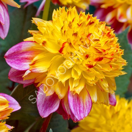 Георгина анемоновидная – цветы очень похожи по своему виду на махровые анемоны, за что и получили свое название. Центр цветка представляет собой «набитую подушечку», состоящую из длинных трубчатых лепестков (преимущественно желтых оттенков), которую окружают плоские удлиненные лепестки, расположенные в один, два или три ряда.