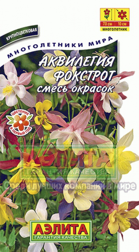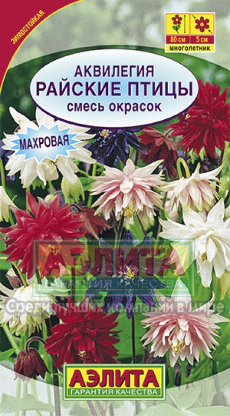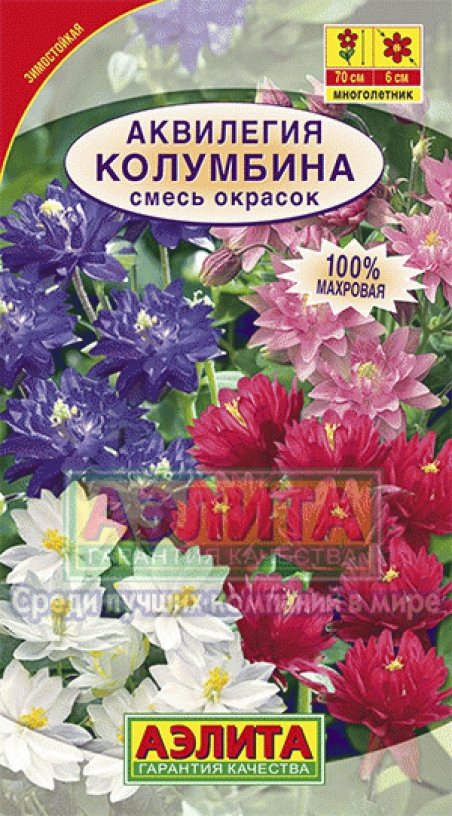 Аквилегия — неприхотливый декоративный цветок, многолетнее растение высотой 30-70 см. В условиях российского климата это растение отлично произрастает и цветет весь теплый период. Во всем мире аквилегия насчитывает до 120 видов. В России любители выращивания цветов смогут наслаждаться красотой только гибридных сортов аквилегии. Всходы семян появляются на 25-30 день при температуре 16-18 градусов. Выбирая место для растения следует учесть, что на сильно освещенном месте цветы сформируются небольшими и не очень яркими. В полутени растению очень уютно, а сильные лучи солнца не будут высушивать почву. Почва для растения должна быть удобренная, рыхлая и хорошо увлажненная. На зиму укрытия не требует. Холодоустойчивое.