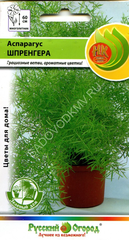 Аспарагус (Asparagus) семейство Аспарагусовых или Спаржевых (Asparagaceae) — многолетние корневищные травы, лианы или полукустарники с мелкими одиночными или собранными в кистевидные соцветия цветками. Родиной их считаются влажные районы Южной Америки, Южной и Восточной Африки, Азии. В диком виде это лазящий полукустарник, в культуре — многолетнее травянистое растение с обильно ветвящимися гибкими побегами (длиной до 1,5 м), гладкими или бороздчатыми, густо покрытыми шиловидными чешуйками длиной 2-4 мм (редуцированные листья).