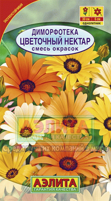 Диморфотека — яркий представитель травянистого растения. Вырастает небольшими кустиками и цветет яркими большими цветами. Диморфотека — многолетнее растение, но в условия российского климата выращивается как однолетка. Ухаживать за растением очень просто. Диморфотека не притязательна.