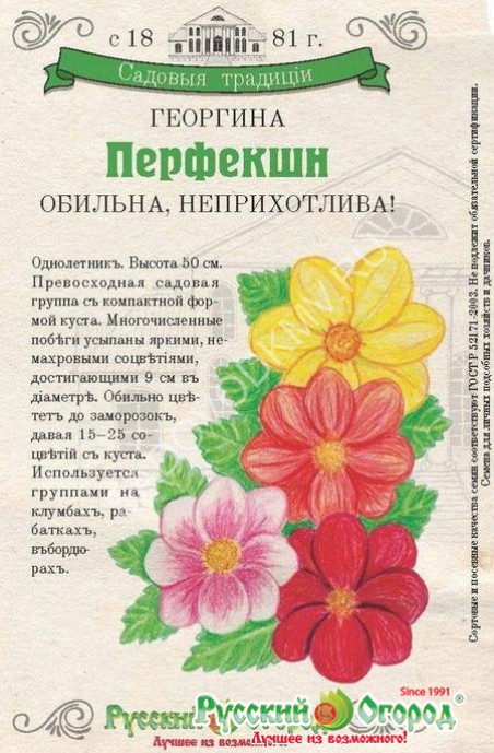 Семена георгин только недавно стали появляться в магазинах, но уже сильно полюбились дачникам. Однолетнее растение высаживается либо сразу в грунт, либо в ящики на подоконник для рассады. Для проклевывания семенам нужно около 12 дней при температуре 18-20 градусов. В мае, когда миновала угроза заморозка можно высаживать георгин в открытый грунт.