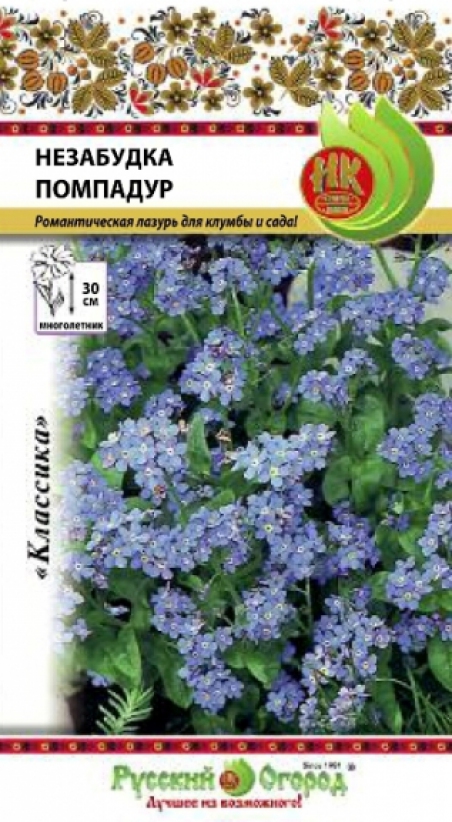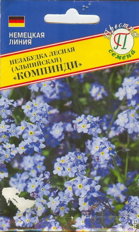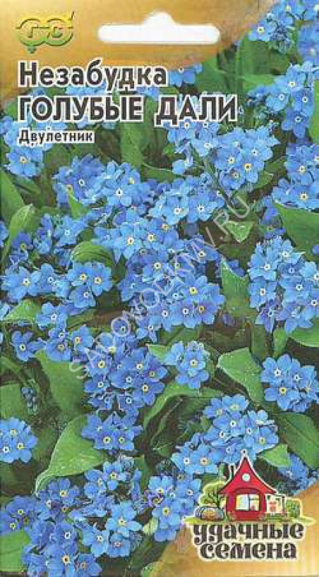 Незабудка — род насчитывает около 50 видов растущих по всему земному шару. Однолетние и многолетние растения с ветвистыми стеблями от 10 до 40 см в высоту. Листья ланцетные или лопатчатые. Цветки голубые с желтым глазком, также бывают белые или розовые. Цветет с мая и до середины июня. Всхожесть сохраняется 2-3 года.