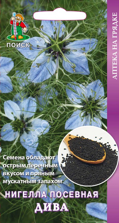 Купить семена нигеллы на КМВ можно круглый год. Посев происходит в мае в открытый грунт или апреле в парник. Всходы появляются на двадцатый день. Зацветают через два месяца после посева. Растение светолюбивое, хорошо переносит весенние заморозки, что говорит о его холодоустойчивости.