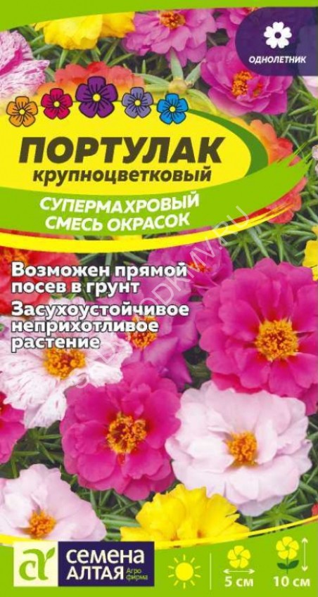 Портулак родом из тропической Америки, насчитывает 100 видов. До 20 см высотой, многолетние и однолетние растения. Стебли распростертые, сочные. Листья мясистые, иногда цилиндрические. Одиночные цветки с разнообразным окрасом. Цветет с мая по октябрь. Семена сохраняют всхожесть до трех лет.