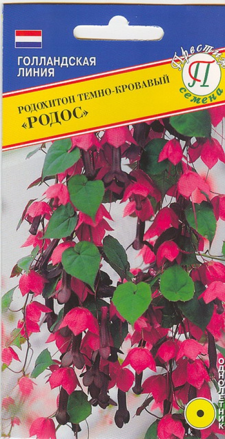 Родохитон — выращивается только один вид — Родохитон темно-кровавый или вьющийся — родом из Мексики. Многолетник, который в поясах с умеренным климатом выращивается как однолетнее. Это вечнозеленое, вьющееся растение высотой не более 3-4 м. Стебли — одревесневающие, красноватые. Листья зубчатые, темно-зеленые, иногда с пурпурным краешком. Темноватые цветы со слабым ароматом.