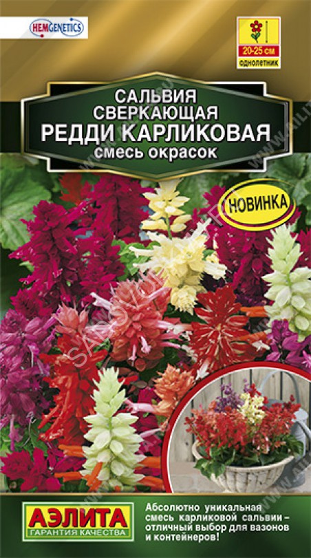 Сальвия — распространена в теплых и умеренных полушариях нашей земли, и насчитывает не менее 700 видов. Многолетние травянистые или полукустарниковые растения, с прямостоячими или восходящими, четырехгранными, простыми, иногда - ветвистыми стеблями высотой до метра. Листья цельные, черенчатые, темно-зеленые. Плод — распадающийся на четыре орешка. Семена сохраняют всхожесть от двух до пяти лет, в 1г до 400 штук.