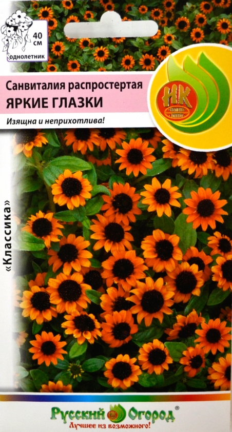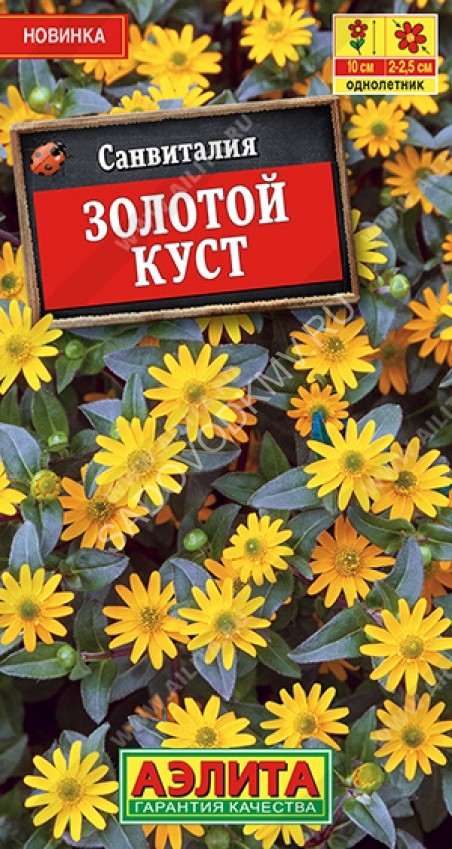 Санвиталия — родом из Северной Америки, имеет 7 видов. Однолетние, низкие растения, с сильноветвистыми стеблями. Листья черешчатые, яйцевидные. Цветки белые, желтые или оранжевые, собраны в соцветия в виде корзинок, диаметром до 2 см. Плод — семянка, в 1г 950-1200 семян.
