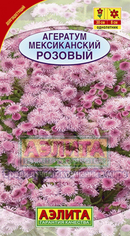 Популярное пышноцветущее однолетнее растение с приятным ароматом. Кустики компактные, прямостоячие, сильно ветвистые, высотой 25-30 см. Мелкие соцветия-корзинки собраны в сложные соцветия до 10 см в диаметре. Цветение раннее и продолжительное, с июня до осенних заморозков. Растения легко переносят воздействие дождя и ветра. Агератумы теплолюбивые, предпочитают солнечное местоположение, хорошо переносят стрижку и обрезку. Идеально подходят для выращивания в горшках и балконных ящиках,