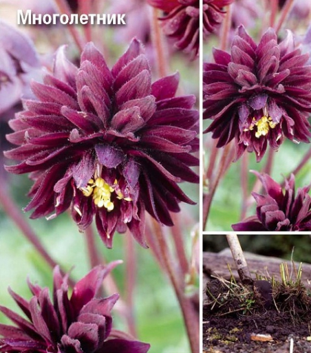 Аквилегия – многолетнее растение с оригинальной формой цветков. Цветы трехлепестковые, со шпорами, похожи на колокольчик. В зависимости от сорта могут быть разных цветов, а также двуцветные, махровые. Месторасположение: аквилегии лучше чувствуют себя в полутени, однако их можно высаживать и на хорошо освещенные места. Здесь растения несколько мельчают и слабеют, а период цветения укорачивается. Почва: хорошо развивается на умеренно влажных, легких и рыхлых, богатых гумусом и питательными веществами почвах. Посадка: низкорослые формы сажают на расстоянии 25 см друг от друга, более высокие – до 40 см. Цветение: цветет с мая по июль. Использование: используется во всех видах цветочных оформлений: миксбордерах, групповых посадках. Бордо Барлоу - высота растения 80 см. Красивый винный цвет бутонов эффектно смотрится на длинных и тонких стеблях. Цветок махровый, 9 см.
