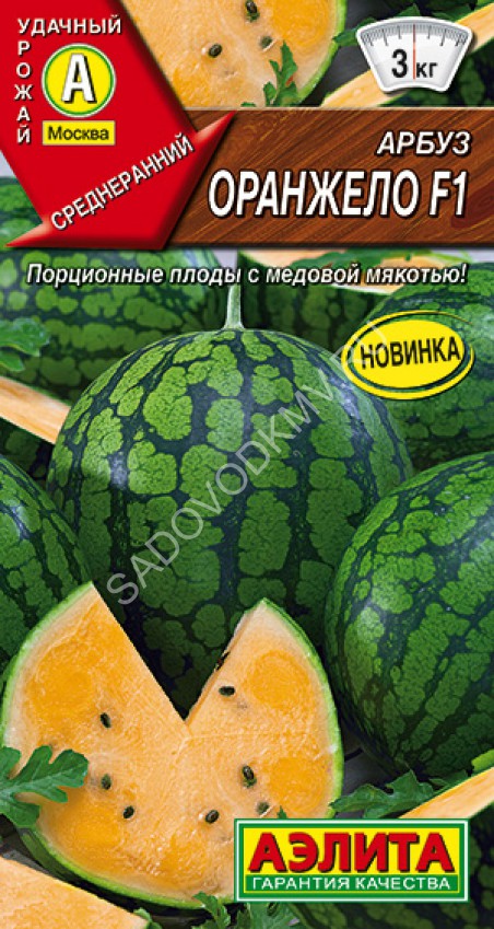 Раннеспелый гибрид арбуза типа Кримсон Свит. С момента всходов до сбора товарных плодов проходит около 70 дней. Растение очень сильное, длинноплетистое, длина главного побега свыше 2 м, рекомендуется формировка в 1-2 плети. На плети завязывается 1 плод массой около 10 кг (в южных регионах – до 16 кг, в северных – 4-6 кг). Плоды овальной формы, гладкие, кора темно-зеленая с размытыми ажурными светлыми полосками. Мякоть плода ярко-красная, приятной сахаристой консистенции, очень сладкая и сочная, с небольшим количеством мелких семян. Гибрид толерантен к фузариозному увяданию (Fom 0,1); толерантен к стрессовым абиотическим факторам. Для повышения степени завязываемости плодов в условиях защищенного грунта рекомендовано проводить опыление вручную. Плотность посадки — 1 растение/1,5-2 м². Урожайность — 5,0-10,0 кг/м².