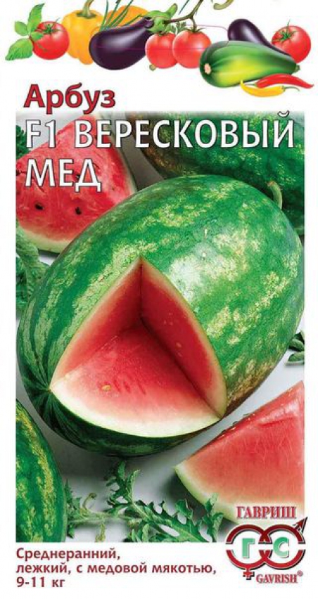 Среднеспелый (от всходов до созревания плодов 80-85 дней) гибрид для открытого грунта и пленочных укрытий. Плоды округлые, светло-зелёные с темно-зелеными полосами, среднего размера, массой 8-12 кг. Кора толстая и плотная. Мякоть ярко-красная, хрустящая, сочная, сладкая, содержание сахара до 12%. Семена среднего размера. Урожайность с растения 24-28 кг. Ценность гибрида: устойчивость к фузариозу и антракнозу, отличные товарные и вкусовые качества, хорошая сохранность при транспортировке на дальние расстояния. Рекомендуется для использования в свежем виде, приготовления цукатов из арбузной корки, засолки.