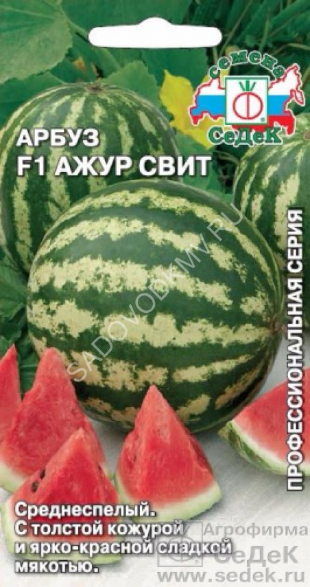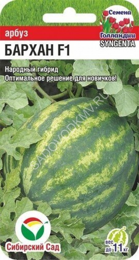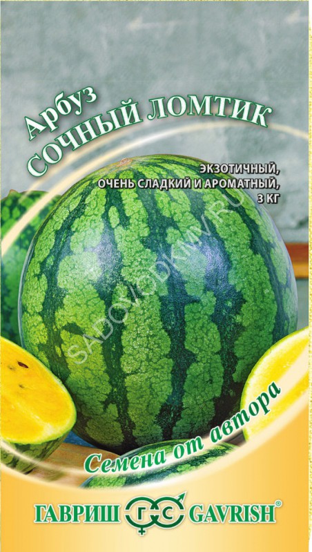 Среднеспелый (76-92 дня от полных всходов до первого сбора плодов) сорт для выращивания в теплицах, под пленочными укрытиями и в открытом грунте (в южных регионах). Растение среднеплетистое. Лист среднего размера, зеленый, рассеченный, слабоморщинистый. Плод эллиптический, массой 3,7-4,0 кг. Окраска фона зеленая. Рисунок — шиповатые полосы средней ширины, темно-зеленого цвета. Кора средней толщины. Мякоть розово-красная, средней плотности, нежная, очень сладкая, сочная. Вкусовые качества отличные. Устойчив к антракнозу. Плоды сохраняют товарные качества в течение 40-45 дней после съема.