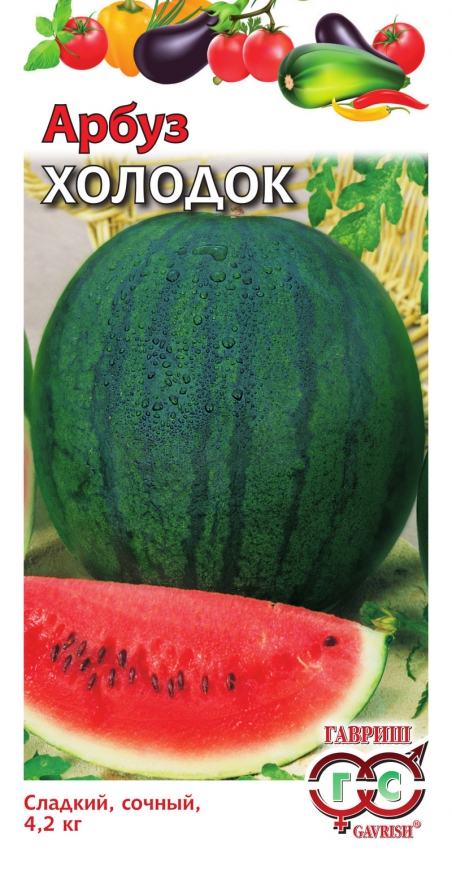 Среднеспелый(период от всходов до созревания плодов 95-100 дней, от завязывания плодов до созревания – 30-32 дня) для открытого грунта и пленочных укрытий. Плоды удлиненно-овальные, зелёные с черными полосками, массой 6-8 (до 10) кг. Мякоть красная, зернистая, сладкая, содержание сахара до 12%. Вкусовые качества очень высокие. Урожайность с растения 15-25 кг. Ценность гибрида: устойчивость к заболеваниям, отличная транспортабельность, пригодность к длительному хранению. Рекомендуется для использования в свежем виде, приготовления цукатов из арбузной корки, арбузного мёда и засолки в бочках.