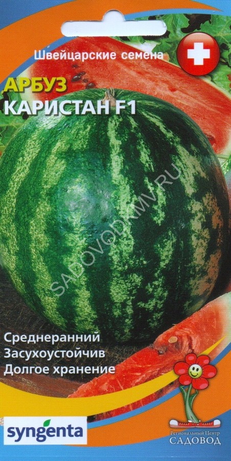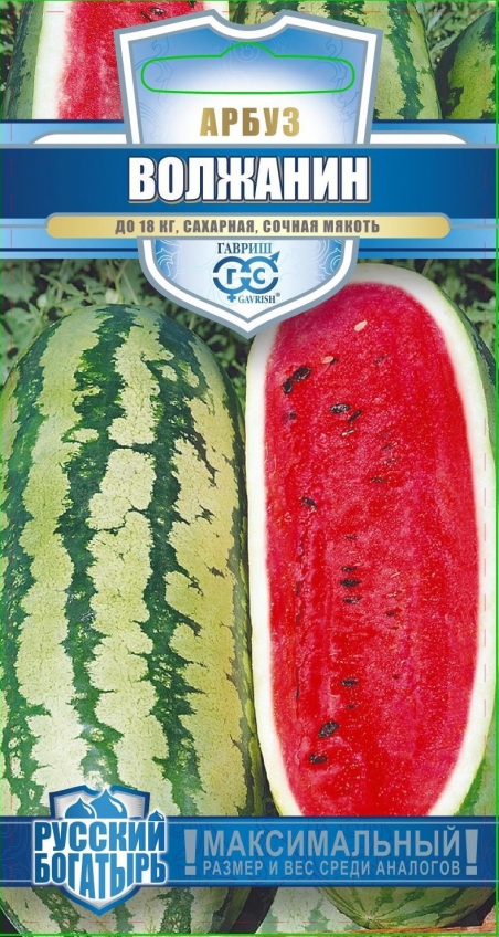 Нежная, очень сладкая мякоть. Очень декоративен. Среднеспелый сорт. Период от полных всходов до первого сбора плодов 85-90 дней. Растение плетистое с крупными плодами массой до 12 кг, цилиндрической формы и необычным рисунком коры. На тёмно-зелёном фоне размещено одно крупное жёлтое пятно и множество мелких жёлтых пятен. Мелкие ярко жёлтые пятна присутствуют и на листьях, что делает растения арбуза весьма декоративными. Мякоть красная, нежная, очень сладкая. Сорт засухоустойчивый.