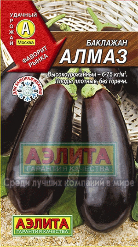 Высокая урожайность, дружное созревание и выравненность плодов. Для открытого грунта и плёночных теплиц. Среднеспелый сорт. Период от всходов до уборки урожая 110-145 дней. Растение сомкнутое, средней высоты. Плод цилиндрический, длиной 15-18 см, поверхность глянцевая, в технической спелости темно-фиолетовый. Мякоть беловатая, без горечи. Масса плода 150-200 г. Лежкость и транспортабельность плодов отличные.