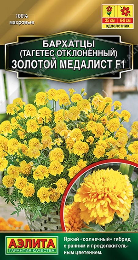 Из всех сортовых негибридных бархатцев Каландо — наиболее выровненная сортосерия. Отличается компактностью, сходной с гибридами, и полной махровостью крупных соцветий.