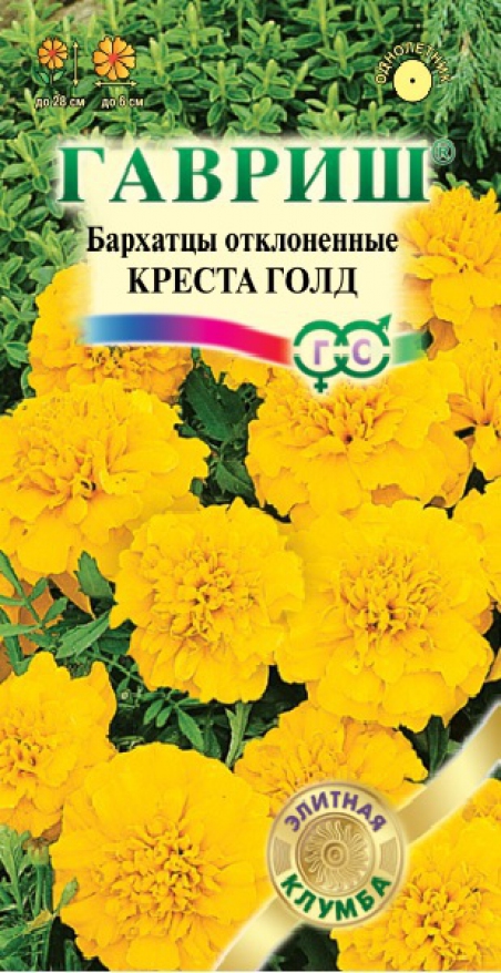 Прямостоячий ветвистый куст высотой 30 см, диаметром 30 см. Соцветия золотисто-желтые, махровые, диаметром 8-10 см. Светолюбивы, теплолюбивы, заморозков не переносят. Предпочитают плодородные легкие почвы. Для оформления бордюров, рабаток, вазонов и балконных ящиков.