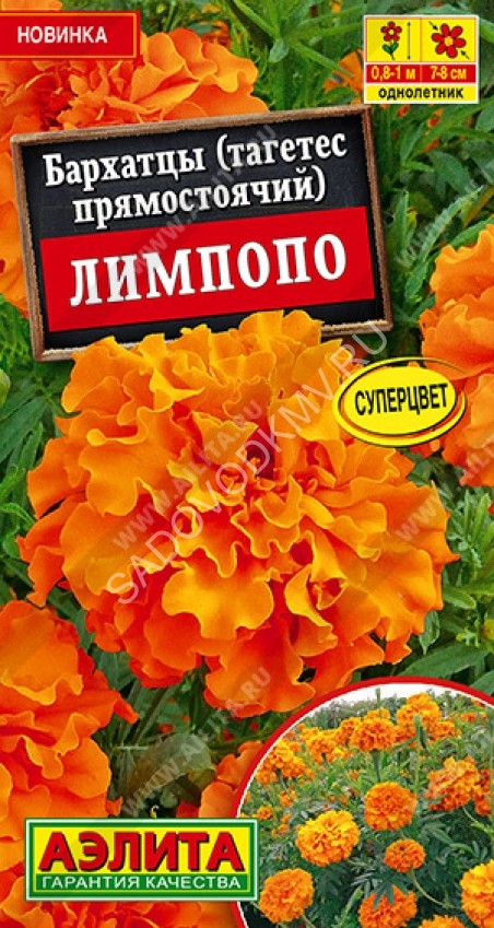 Однолетник. Бархатцы серии «Антигуа» представляют новое поколение прямостоячих бархатцев: мощные, крепкие, хорошо ветвистые кустики с крупными густомахровыми соцветиями диаметром до 15 см. Высота растения – 25 см, ширина – 25-30 см. Все растения выровнены по высоте и размерам, идеально подходят для создания бордюров, ковровой посадки.