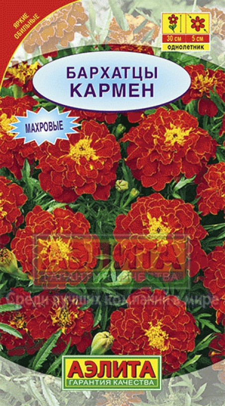 Обильно цветущий сорт для ярких нарядных цветников. Растение сильноветвистое, формирует раскидистый кустик с изящными перисто-рассеченными листьями. В пору цветения растение похоже на цветущий шар, усыпанный красно-коричневыми с желтой серединкой соцветиями – корзинками до 3 см в диаметре. Бархатцы теплолюбивы и светолюбивы, засухоустойчивы, отзывчивы на плодородие почв. Высаженные рядом с огородными культурами, они уменьшают их поражение грибными заболеваниями, особенно фузариозом, защищают от некоторых видов нематод. На рассаду высевают в начале апреля. В открытый грунт можно высевать в конце мая — начале июня. Всходы появляются на 5-10 день. Широко используются в озеленении при оформлении бордюров, для выращивания в контейнерах, вазонах. Пригодны для выращивания в ампелях на балконах и лоджиях.