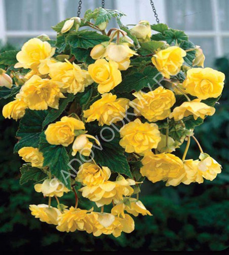 Бегония Нон Стоп - очень популярная серия, отличается непрерывным цветением, компактным габитусом и обилием цветков. Во время цветения кустики усыпаны густомахровыми цветами, диаметром 7-10 см, напоминающими миниатюрные пионы. Месторасположение: защищенное от ветра, освещенное место без прямых солнечных лучей в полуденные часы. Почва: воздухо- и водопроницаемые плодородные почвы. В зависимости от качества почвы вносят дренаж, песок, листовую землю, перегной, перепревший навоз, комплексные минеральные удобрения. Посадка: лучше заранее подготовить растения к высадке и в открытый грунт высаживать уже с зелеными побегами. Для этого клубни в конце марта-начале апреля высаживают в ящики или горшки. На дно горшка насыпают дренаж (камушки или керамзит), заполняя 1/3 высоты горшка. Клубни погружают в почву так, чтобы верхушки были на уровне поверхности, держат в темноте при температуре +15…+18 0С до появления почек. Сразу после появления почек выносят на свет. Содержат при +15…+20 0С, поливают по мере подсыхания почвы. В открытый грунт высаживают после того, как минует угроза весенних заморозков. Уход: своевременные поливы, рыхления, прополка сорняков. Хорошо, если 2-3 раза за лето вы подкормите свои ампельные бегонии жидкими органическими удобрениями. Клубни выкапывают осенью, после отмирания листвы. Использование: прекрасно подходят для озеленения балконов и клумб. Йеллоу - высота растения 20-30 см. Цветы желтые. Края лепестков изящно волнистые.