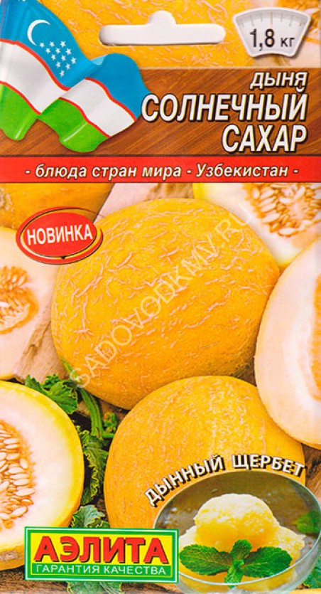 растение. От полных всходов до 1-го съёма плодов 68-70 дней. Масса товарного плода 1,5-2,5 кг. Снаружи дыни имеют округлую форму, желтоватую окраску с густой, мелкой сеткой. Внутренняя основная окраска мякоти зеленовато-белого цвета, семенная камера маленькая, семена короткие, средней ширины кремово-жёлтого цвета. Мякоть средней плотности, прекрасных вкусовых качеств: нежная, сочная, очень ароматная и сладкая, содержание сахара 9-11%. Гибрид высоко устойчив к фузариозному увяданию, среднеустойчив к мучнистой росе. Транспортабельность средняя, лёжкость около 25-30 дней. При выращивании в теплице рекомендуем высаживать 2 растения /м2.
