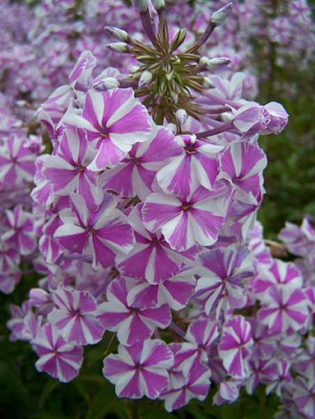 Флоксы - растения травянистые многолетние. Стебли прямостоячие, восходящие или ползучие, от 10-20 см до 120-150 см высотой. Листья цельнокрайные, сидячие, расположены супротивно, иногда в верхней части стебля — в очередном порядке. Цветки душистые, белые, розовые, красные, сиреневые, алые, голубые, карминовые с глазком в центре, 2,5-4 см в диаметре, обычно собраны в щитковидные или метельчатые соцветия различного строения и величины, реже одиночные.