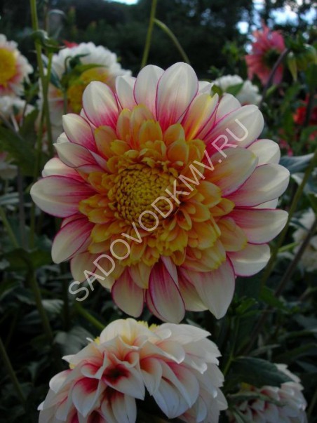 Георгина – популярное садовое растение с крупными перистыми листьями и оригинальными соцветиями-корзинками. Растения высотой 40-120 см, обильно ветвятся, формируя пышные кусты с обилием цветоносов. Корзинки немахровые и полумахровые, окраска язычковых цветков самая разнообразная, ярких и пастельных тонов, контрастная и меланжевая.