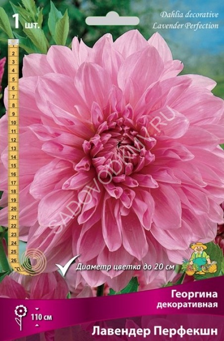 Георгина декоративная - это самый представительный и многочисленный класс георгин. Полностью махровый цветок, диаметром от 10 до 25 см, имеет плоские лепестки (язычковые цветки), слегка закрученные и отогнутые к стеблю, что делает его необыкновенно пышным и эффектным. Окраска самая разнообразная.