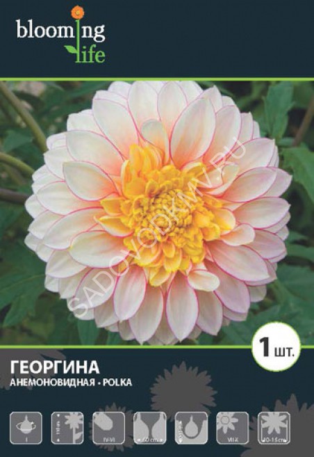 Георгина – популярное садовое растение с крупными перистыми листьями и оригинальными соцветиями-корзинками. Растения высотой 40-120 см, обильно ветвятся, формируя пышные кусты с обилием цветоносов. Корзинки немахровые и полумахровые, окраска язычковых цветков самая разнообразная, ярких и пастельных тонов, контрастная и меланжевая.