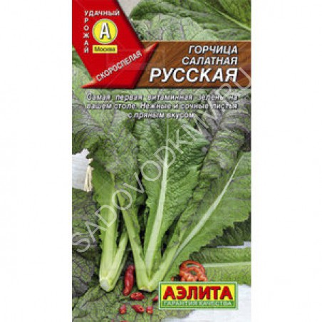 Однолетнее скороспелое холодостойкое растение. Период с момента появления всходов до готовности зелени 25-30 дней. Высевают рядовым способом на расстоянии 10—15 см (глубина заделки семян до 1 см), в фазе 2-3-х листьев прореживают, оставляя между растениями 6-8 см. Розетка листьев крупная, прямостоячая, слегка раскидистая. Молодые листья имеют приятный горчичный вкус и темно-красный цвет. Листья крупные, удлиненноовальные, без воскового налета, содержат каротин, витамины, соли кальция и железа. Хорошо растет на обычных почвах, требовательна к влаге, при ее недостатке листья становятся грубыми и вкус их ухудшается. К уборке приступают, когда растения достигнут высоты 5-7 см. Горчицу срезают ножницами или выдергивают с корнями. Сорт предназначен для выращивания свежей зелени в открытом и защищенном грунте.