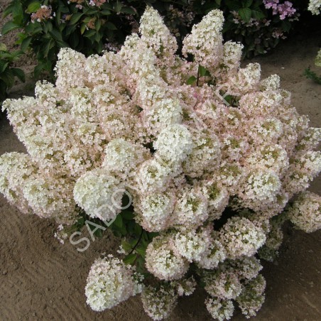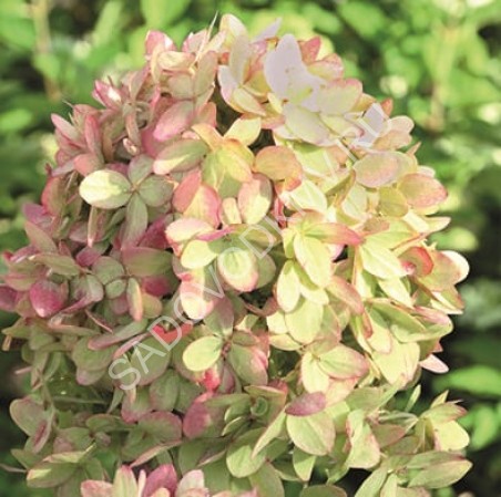 Куст высотой 1-1,5 м. Соцветия диаметром 20 см. Окрас цветков в течении сезона меняется. При распускании цветки зеленые с ярко-красным оттенком, который постепенно переходит в чистый розовый, а к осени меняет от светло-зеленого до зеленого с вишнево-красным оттенком. Цветет на побегах прошлого и текущего годов.