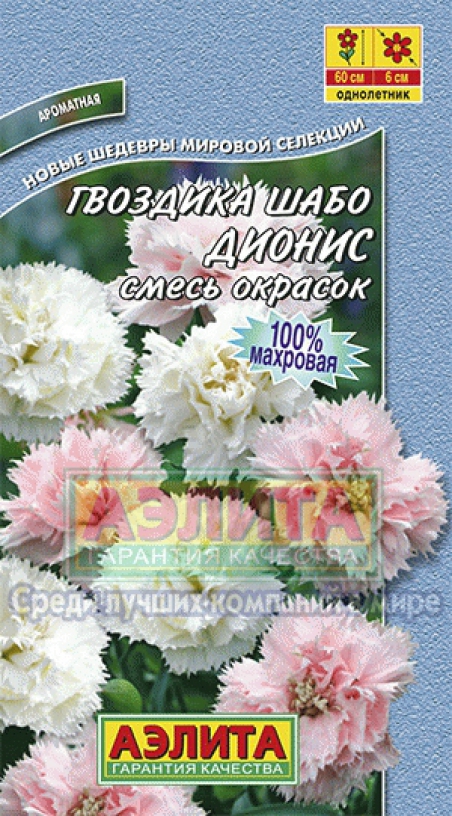 Многолетник. Серия генетически карликовой гвоздики. Высота 20-25 см. Формирует многочисленные махровые цветы диаметром около 6 см все лето. Остается низкорослой и компактной без прищипок и применения регуляторов роста. Красочное растение для садов и двориков, контейнеров и вазонов. Может выращиваться как горшечная культура (диаметр горшка 10-15 см).