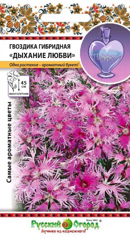 Многолетник. Серия генетически карликовой гвоздики. Высота 20-25 см. Формирует многочисленные махровые цветы диаметром около 6 см все лето. Остается низкорослой и компактной без прищипок и применения регуляторов роста. Красочное растение для садов и двориков, контейнеров и вазонов. Может выращиваться как горшечная культура (диаметр горшка 10-15 см).