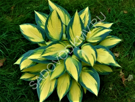 Данный вид хост относится к большим. Вырастает до 70 см в высоту и до 150 см в ширину. Листья сине-зелёные с широкой жёлтой каймой. Края листьев слегка волнистые. Цветки лавандовые на цветоносах высотой до 120 см. Цветет в июле-августе. Место полутенистое или тенистое. Почва влажная, дренированная. Зона 3 (до -34ºС).