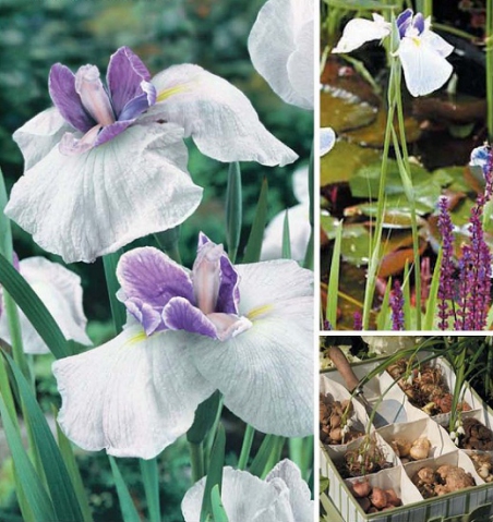 Ирис японский – высота растения 80-120 см, листья мечевидные, к концу суженные, светло-зеленые, у основания красно-фиолетовые, с ярко-выраженной средней жилкой. Цветки крупные лилово-фиолетовых окрасок. Цветок живет 3-5 дней. Устойчивы к бактериозу, зимуют с укрытием.