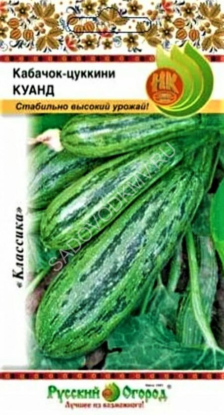 Раннеспелый (35-52 дня) гибрид. Растение кустовое, среднерослое. Плоды цилиндрические, прямые, серо-зеленые, с темно-зелеными слабовыраженными полосами, массой 0,7-1,2 кг. Мякоть бело-кремовая, средней плотности, нежная, вкусная. Урожайность 7-8 кг/м2. Ценность гибрида: устойчивость к мучнистой росе и антракнозу, обильное и продолжительное плодоношение. Рекомендуется для всех видов кулинарной переработки.