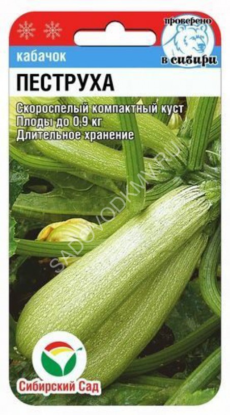 Раннеспелый высокоурожайный сорт, период от полных всходов до первого сбора плодов 45-50 дней. Растения кустовые, компактные. Плоды цилиндрические,гладкие, длиной 18-20 см, массой 0,8-1,2 кг. Кожица тонкая, мякоть светлая, хрустящая, нежная, отличных вкусовых качеств. Рекомендуется для различной кулинарной переработки, фарширования, приготовления зимних закусок и замораживания. Плоды хорошо хранятся и транспортируются.
