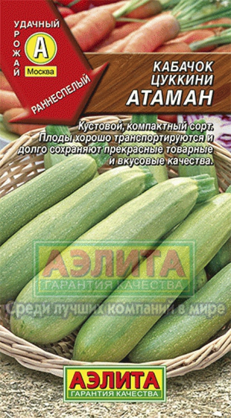 Скороспелый, высокоурожайный сорт, вступает в плодоношение на 38-47 день от всходов. Растения кустовые. Плоды цилиндрические, длиной до 20 см, гладкие, массой 0,6-1,0 кг. Мякоть светлая, плотная, с превосходным вкусом. Обладает великолепными кулинарными качествами, рекомендуется для при-готовления диетического питания, икры и консервирования. Урожайность высокая – 9-10 кг/ м2.
