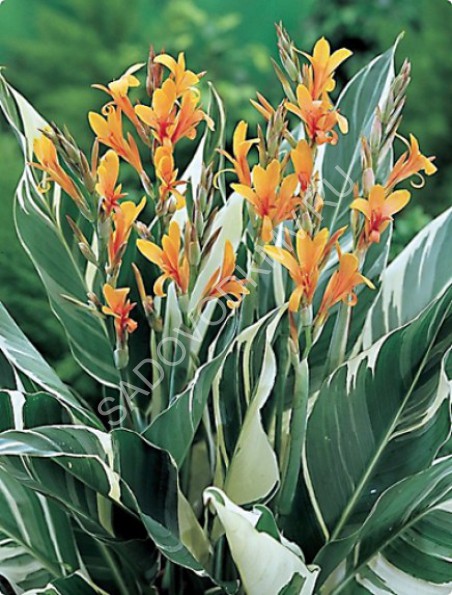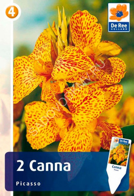 Канна Голден Люцифер - высота растения 50-60 см, цветок желтый с красным крапом.