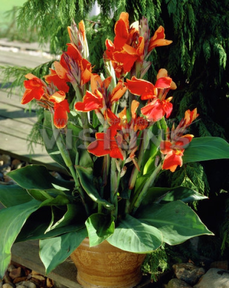 Посадка: высаживают в мае с наступлением устойчивой теплой погоды. Если канны прорастить заранее в комнате, то цветение наступит раньше на 1,5 недели. Канны лучше растут и цветут на «горячей подушке». Для этого в посадочную яму глубиной 60-70 см добавляют навоз толщиной 20 см, сверху засыпают землей слоем 20-25 см. Глубина посадки непроросших клубней 5-7 см, проросших – 10-15 см.