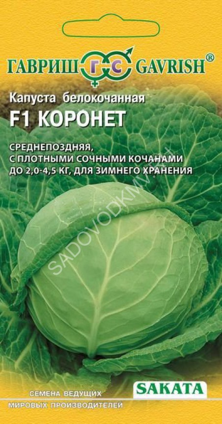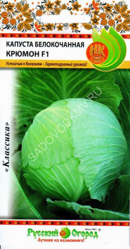Гибрид среднеспелый. От высадки 45-дневной рассады до уборки урожая 75-85 дней. Розетка листьев некрупная, полуприподнятая. Кочан овально-округлый, массой от 2 до 5 кг, с короткой внутренней кочерыгой. Кроющие листья - зеленые, внутренние - тонкие, белой окраски. Гибрид устойчив к растрескиванию, не теряет товарных качеств на поле в течение 20-30 дней. Генетически устойчив к фузариозному увяданию. Предназначен для свежего потребления, домашней кулинарии и квашения. Плотность посадки 3,5- 4 растения/м2. Урожайность 10-14 кг/м2.