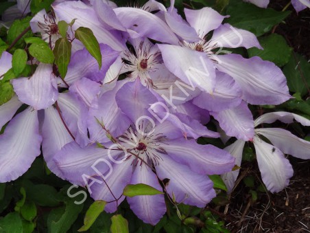 Цветки среднего размера (крупные для группы Atragene), диаметром 7-8 см, махровые, лилово-розовые с белым оттенком, колокольчатые. Тычинки с желтыми пыльниками на зеленых нитях. Наиболее обильно цветет в мае-июне. Сложные тройчатые листья с зубчатыми краями. Вьющееся растение; за опоры цепляется листовыми хвостиками. Вырастает до 2,5–3 м в высоту. Группа обрезки I