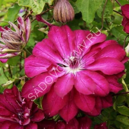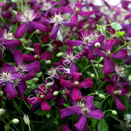 Цветки диаметром 4-6 см, внутри белые, снаружи фиолетовые. Цветёт в конце июня-сентябре на побегах текущего года. Высота 400 см. На зиму требуется укрытие более тщательное, чем для клематисов других групп. Группа обрезки 3 (сильная).