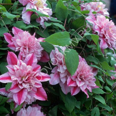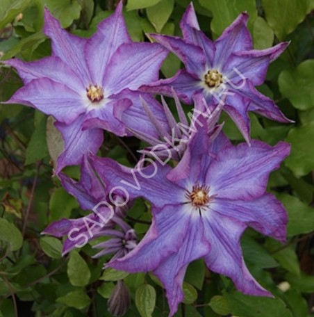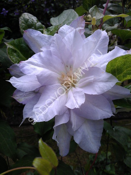 Исключительно красивый сорт со светло-голубыми, всегда махровыми цветками. Цепляется за опоры листовыми черешками. Высота растения 2 м. Цветёт обильно весной в мае - июне и повторяет цветение в августе - сентябре.