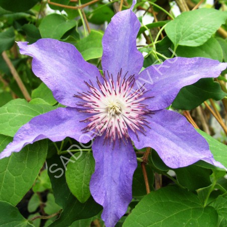 Очень оригинальный японский сорт с фиолетовыми цветками и пучком кремовых, исключительно длинных тычинок по середине. Цветёт в мае - июне и повторно в августе. Пригоден для выращивания в контейнерах.
