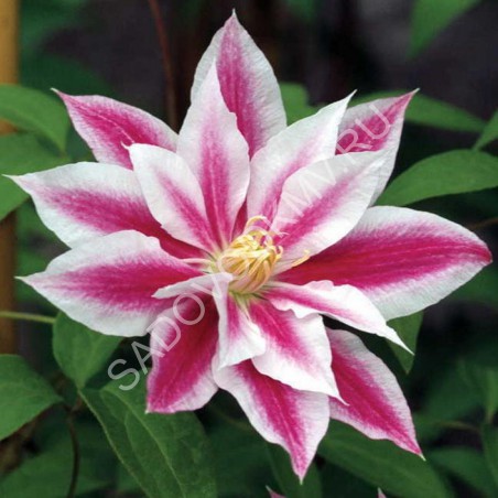 Цветки диаметром 10-12 см, светло-розово-белые с красной каймой. Тычинки красно-пурпурные, светлые в основании. Цветёт в мае-июне на прошлогодних побегах. Высота 200 см. На зиму в средней полосе требуется обязательное укрытие. Обрезка слабая (II группа).