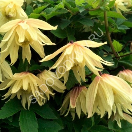 Побеги длиной до 2м. Цветки крупные, 10-15 см в диаметре, белые с зеленоватыми полосками, коричнево-красные тычинки. Цветет с мая по июнь, повторное цветение с июля до сентября.Устойчив и зимостоек.