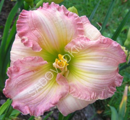 Бали Хай - высота растения 55 см. Цветок желтый с розовым оттенком и золотисто-желтым горлом, диаметр цветка 13 см.