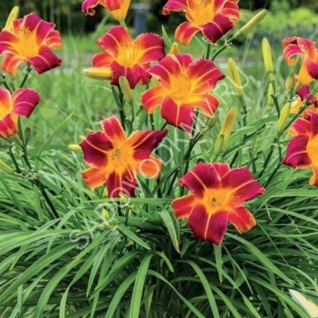 Лилейники – корневищные травянистые многолетники с мочковатыми мясистыми корнями. Мечевидно-изогнутые листья образуют плотные кусты. Цветки по форме похожи на цветки лилий, крупные, чаще воронковидные, шестираздельные, с небольшой трубкой, собраны по 2-10 в раскидистые соцветия. Каждый цветок живет один день, но множество цветков на взрослом растении обеспечивают длительное цветение. В пасмурную прохладную погоду цветки живут до шести дней. Общая продолжительность цветения куста 25 и более дней. Лилейник один из самых малотребовательных многолетников. Зимостоек, засухоустойчив, жизнестоек. Сохраняет декоративность с весны до глубокой осени. На зиму можно не обрезать, лишь подсыпать к кустам торфокомпост. На одном месте может расти очень долго, образуя крупные, широкие кусты.