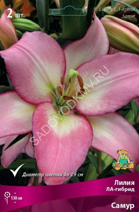 Бон Ши- высота растения 110см, цветок светло-розовый с ярко-розовыми полосами по центре лепестка в виде звезды.